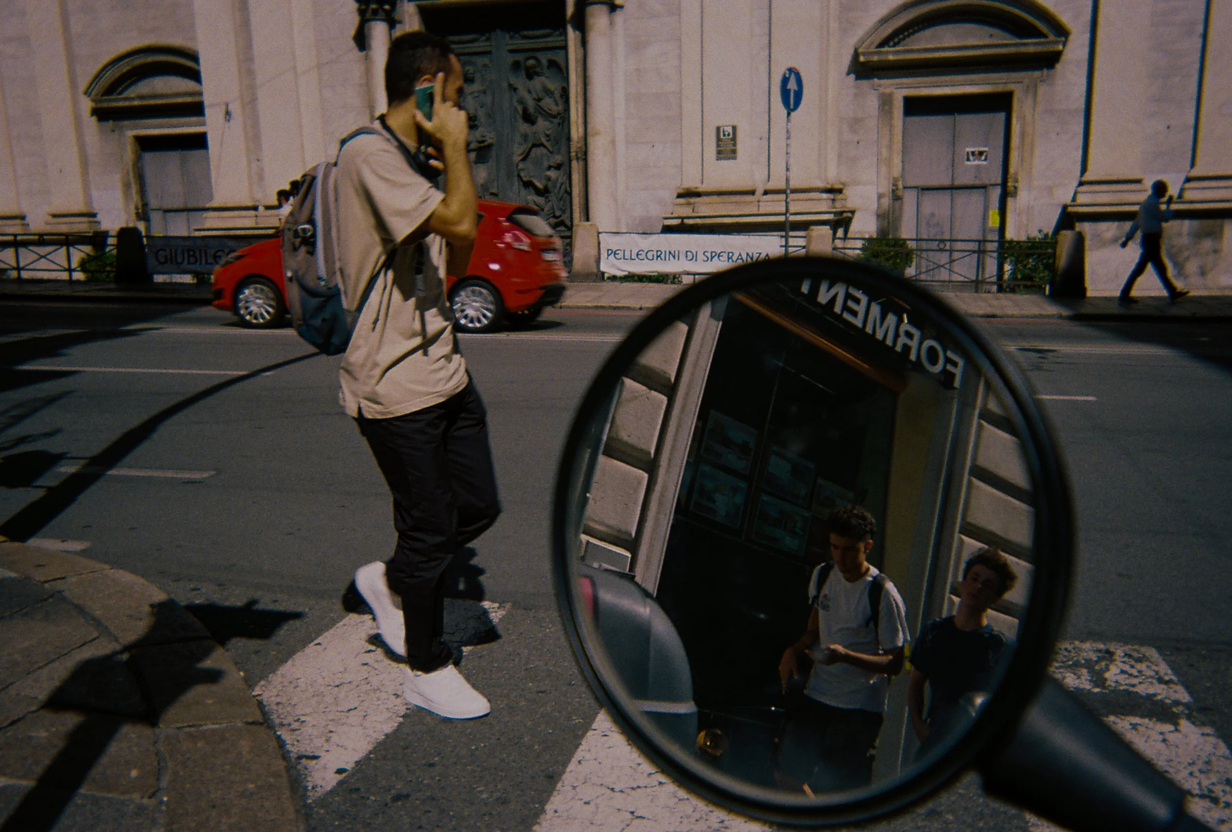 Shot entirely in Genoa, the project is both a tribute to the city and a study of transient moments: gestures in passing, fragments of urban life, and the subtle theatre of people moving through their own realities. The grain, the blur, the light leaks—they’re not flaws but clues, guiding the viewer deeper into a world where nothing is staged and everything is observed.